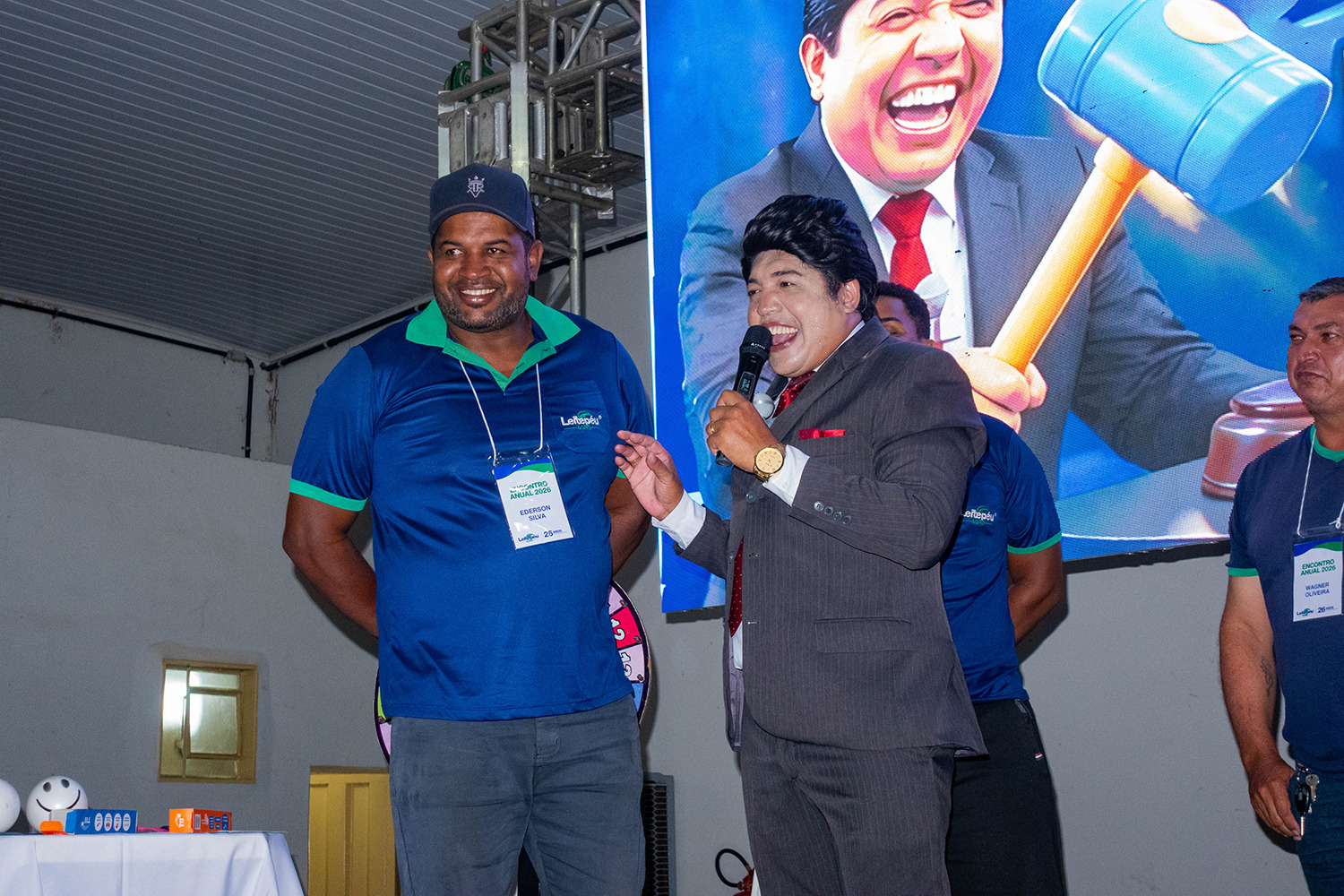 O grande destaque da jornada foi a energia contagiante levada ao palco pelo palestrante e humorista Kelton, que personificou com maestria o icônico Silvio Santos. Através de interações personalizadas e brincadeiras que envolveram diretamente os colaboradores, ele transformou informações institucionais em momentos de pura diversão. A dinâmica trouxe leveza ao ambiente, reforçando que o bom humor e a conexão entre as pessoas são combustíveis essenciais para um ambiente de trabalho saudável e produtivo.